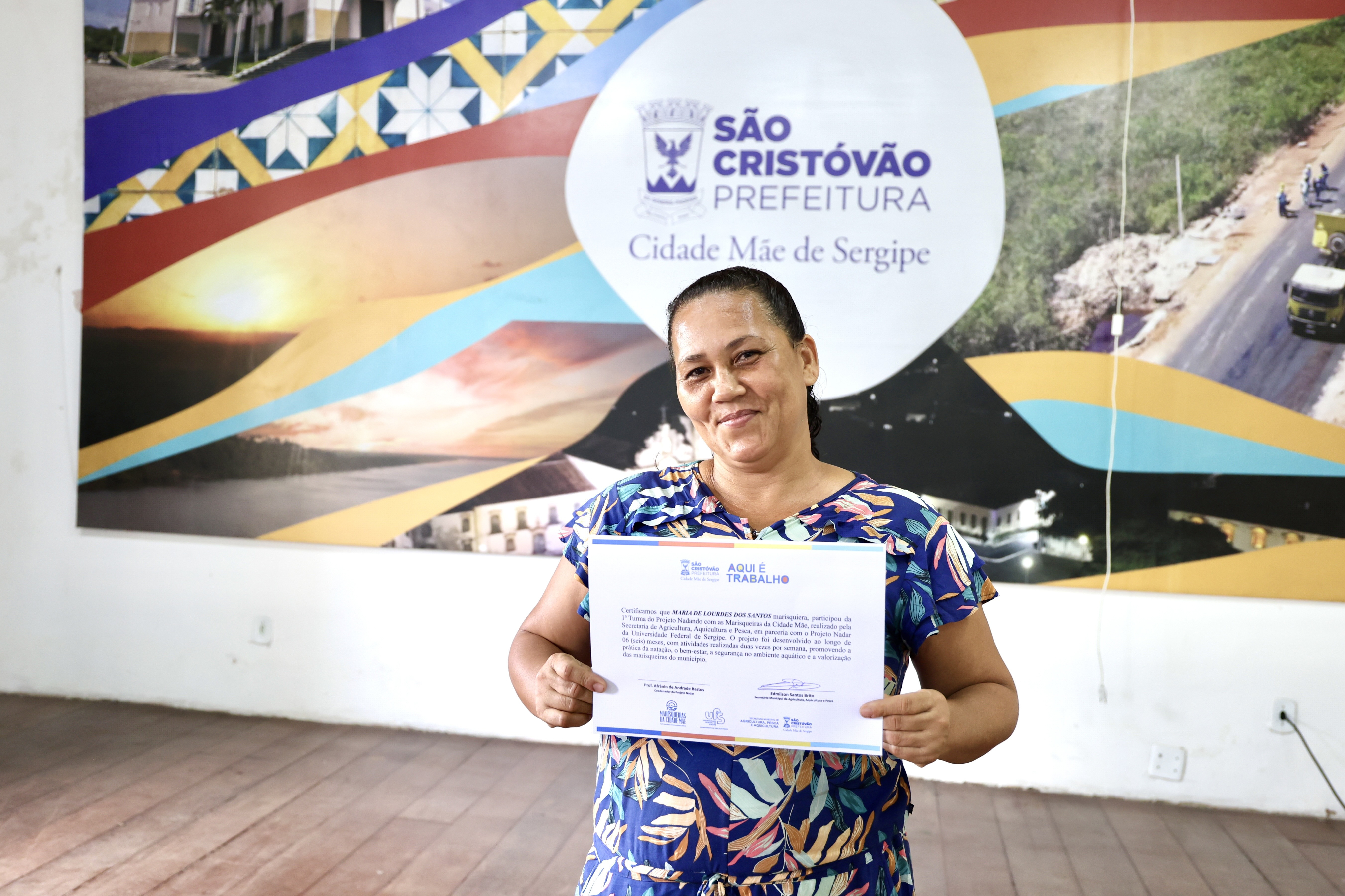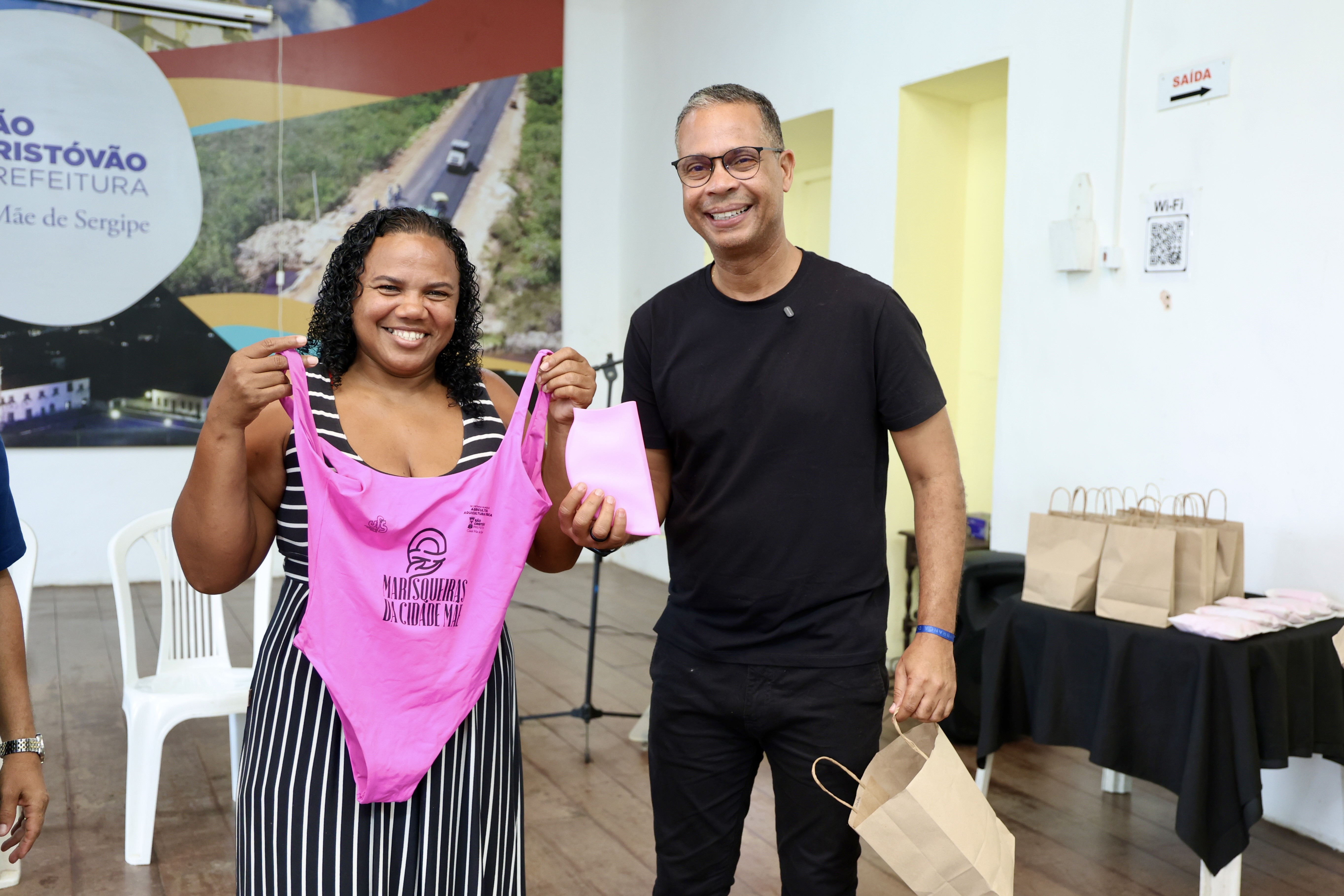 A Prefeitura de São Cristóvão, por meio da Secretaria Municipal de Agricultura, Aquicultura e Pesca (Semagri), realizou nesta quinta-feira (02) a entrega dos kits destinados à formação da segunda turma do projeto “Nadando com as Marisqueiras da Cidade Mãe”. Na ocasião, dez alunas que iniciarão as aulas na próxima semana receberam kits compostos por maiô e touca de natação. Já as nove participantes concludentes da primeira turma foram contempladas com certificados de conclusão e um novo kit, que será utilizado na próxima etapa do projeto.