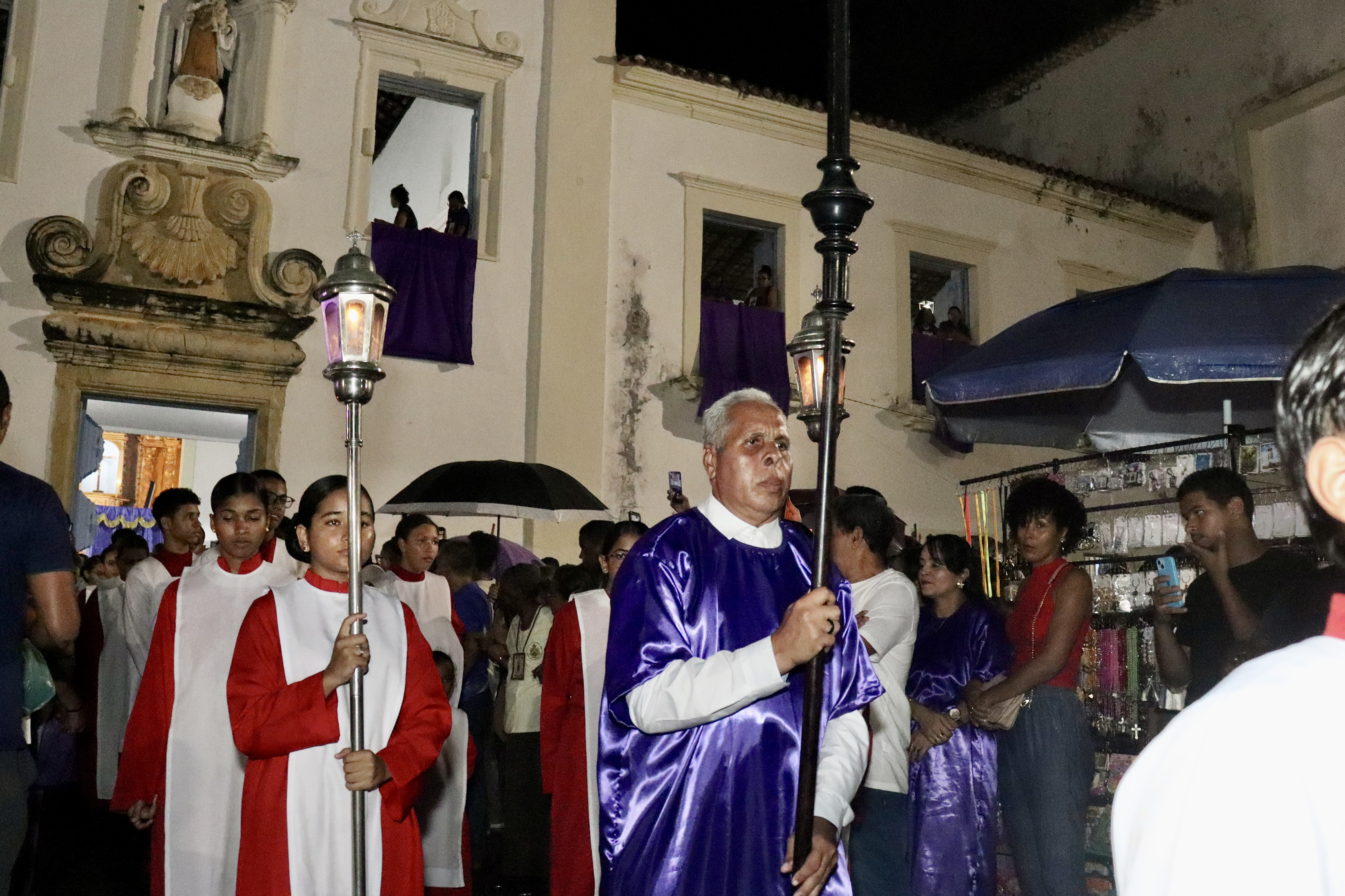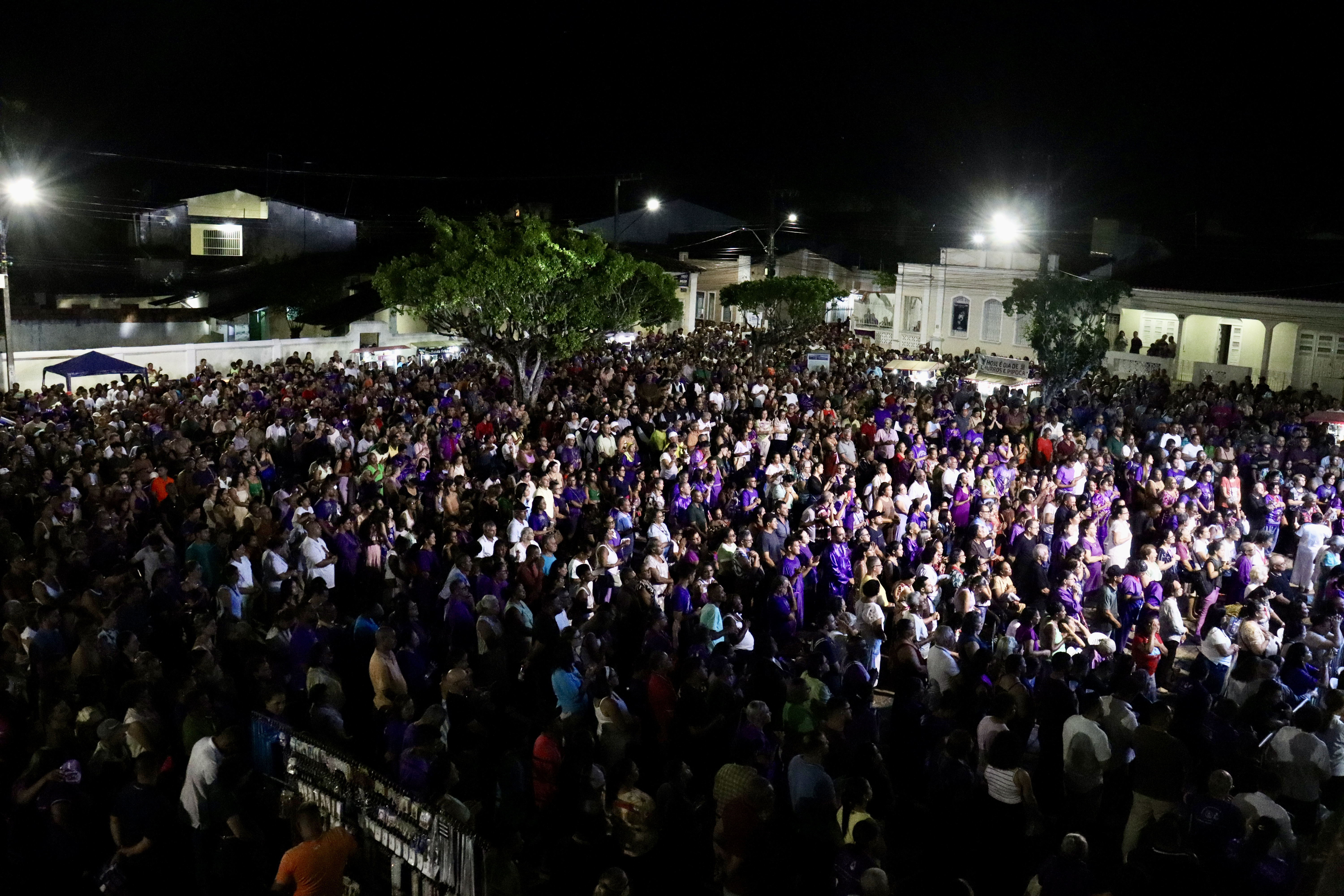 Nesse sábado (28), segunda noite da romaria, milhares de devotos participam da missa e, em seguida, seguem em Procissão de Penitência até o Santuário Nossa Senhora da Vitória (Matriz), conduzindo o andor de Senhor dos Passos em um ato marcado por oração, silêncio e profunda demonstração de fé coletiva.