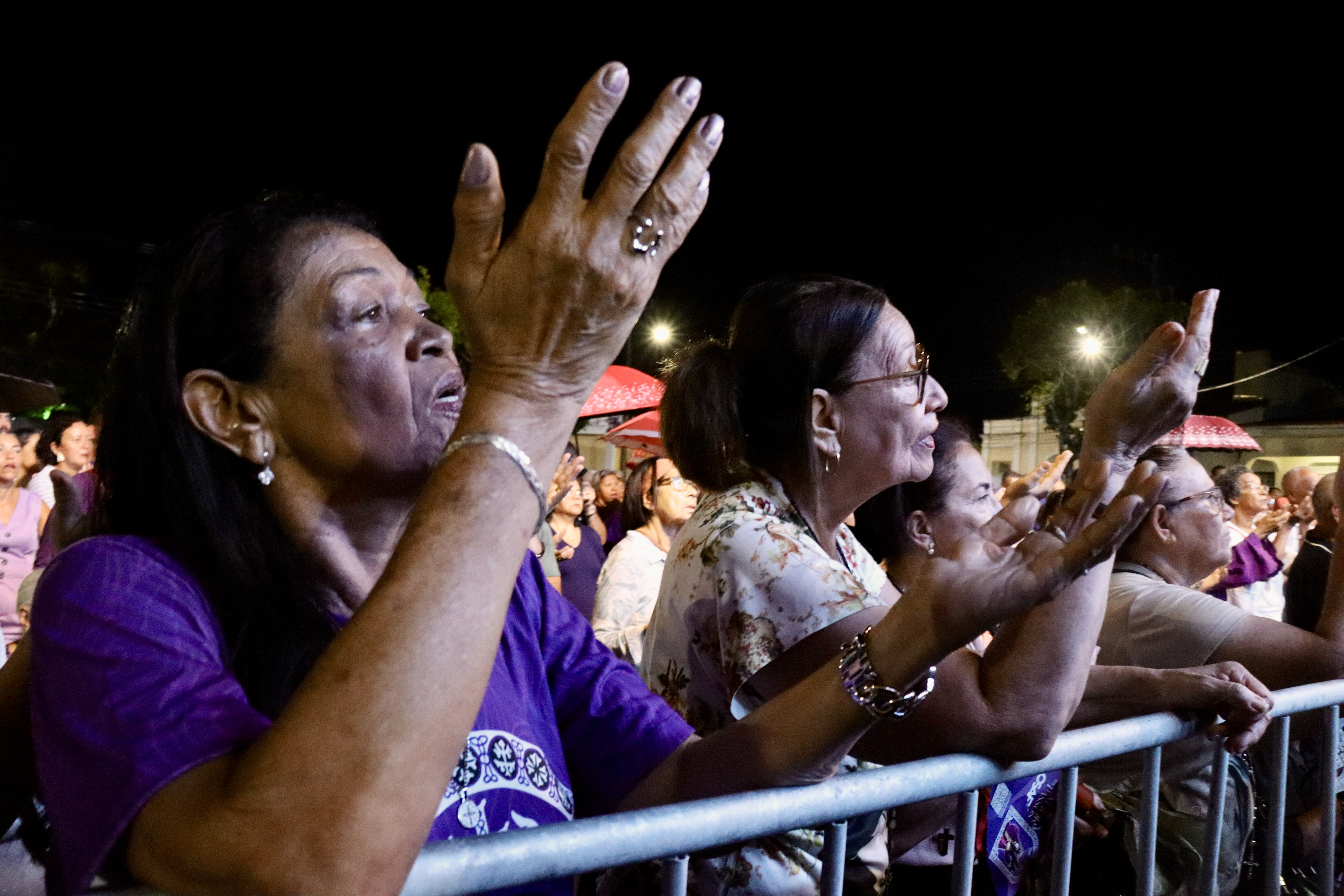 Ela também destacou a emoção que sente ao participar do momento religioso, afirmando que a experiência é difícil de descrever em palavras. Para ela, a romaria é sinônimo de alegria e gratidão, lembrando que já havia participado no ano anterior e vivenciado acontecimentos positivos. “Eu não tenho nem palavras para explicar, só muita alegria, porque no ano passado aconteceram muitas coisas boas”, afirmou.